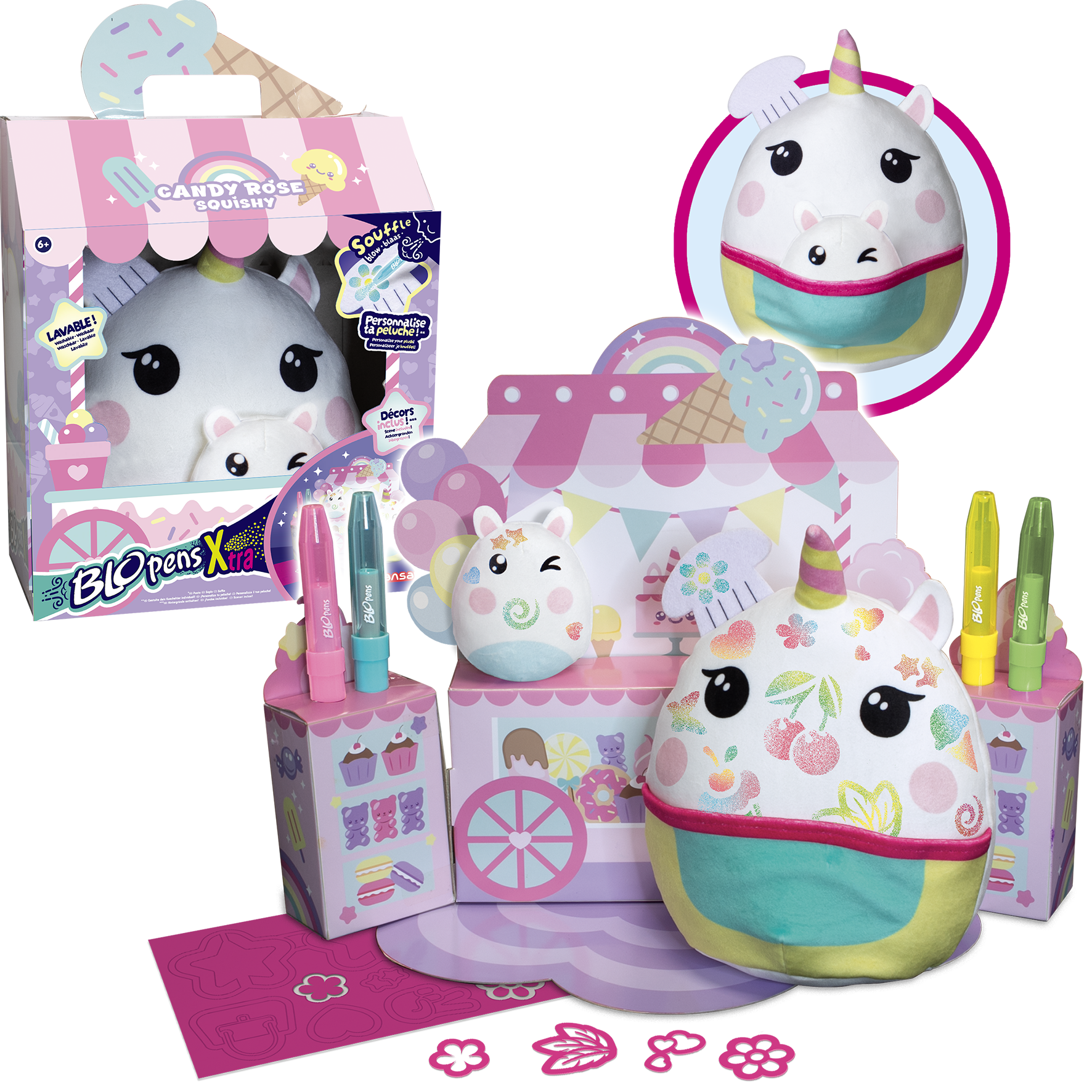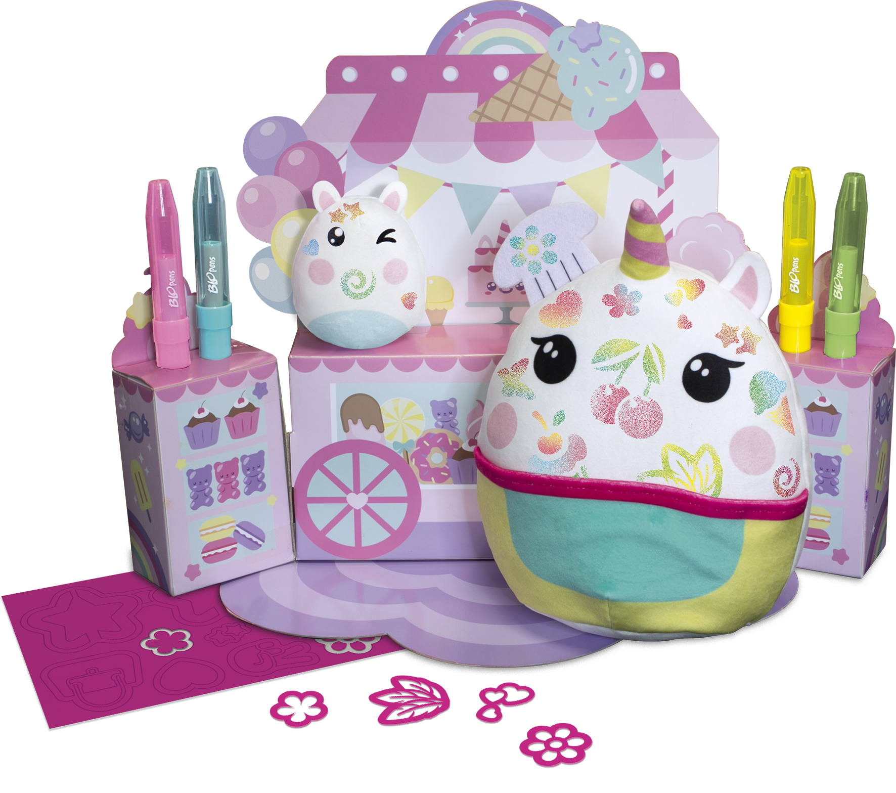 Utilise tes Blopens et pochoirs pour styliser ta licorne comme tu le souhaites. Cette fois, Rose t’invite dans un monde gourmand rempli de douceurs et de surprises !