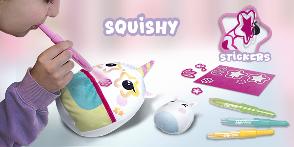 Utilise tes Blopens et pochoirs pour personnaliser Sasha comme tu le souhaites. Cette fois, Sasha t’invite à monter dans son bus pour un voyage amusant et coloré.