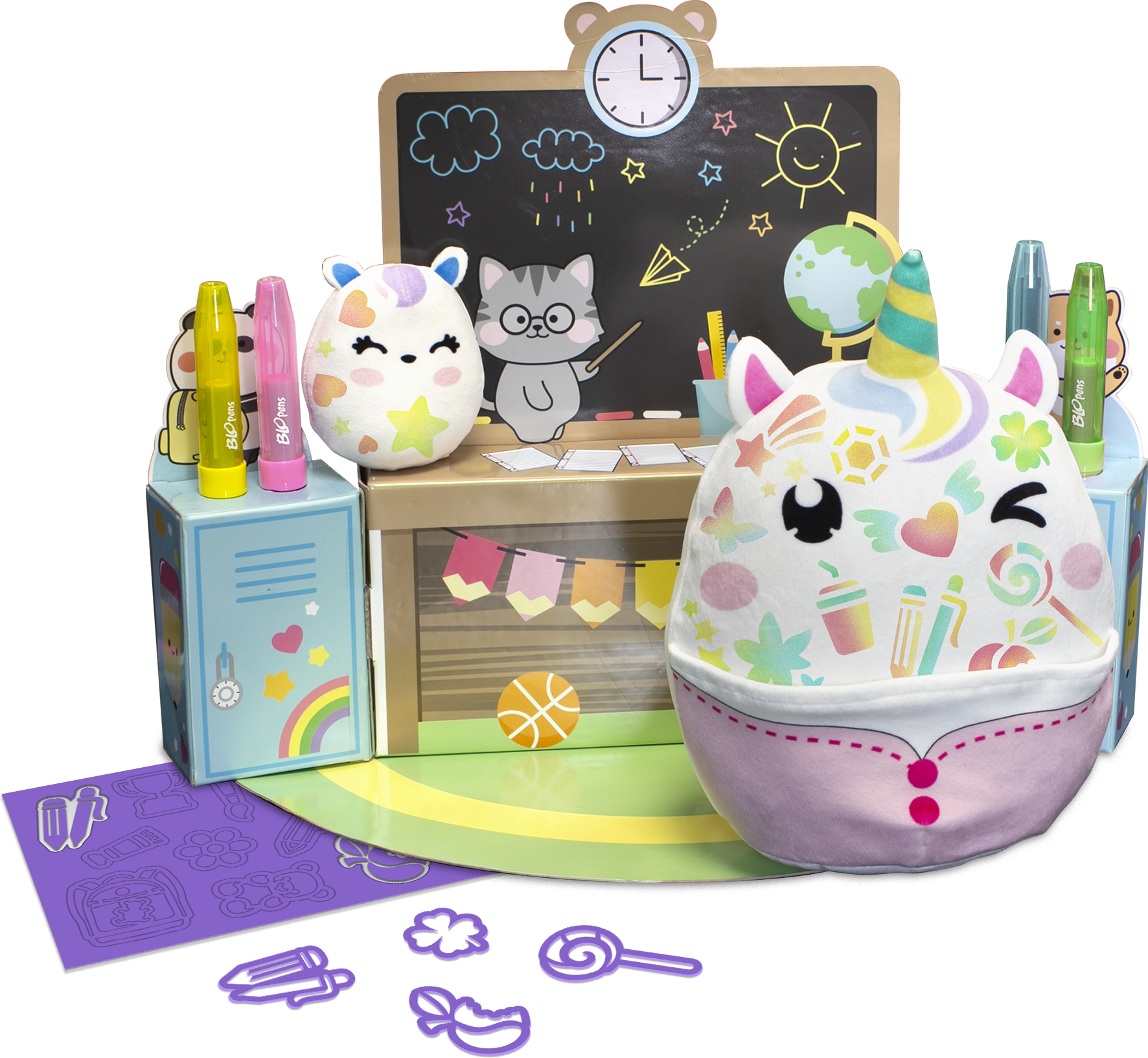 Pour rendre l’expérience Blopens encore plus immersive, le packaging et les accessoires sont sur le thème d'une escapade amusante à bord d'un bus magique avec un arrêt à l’école de Sasha.