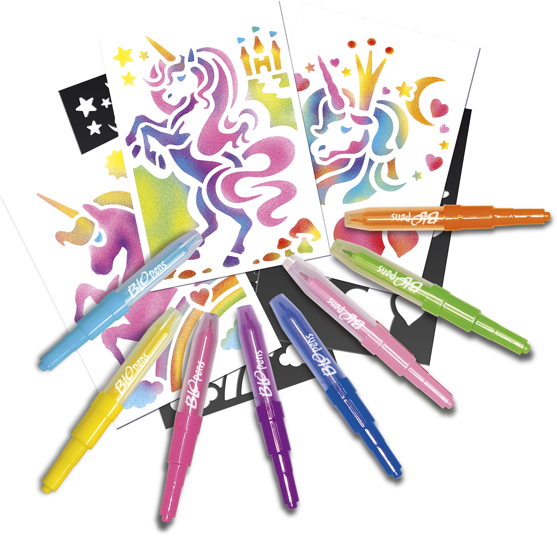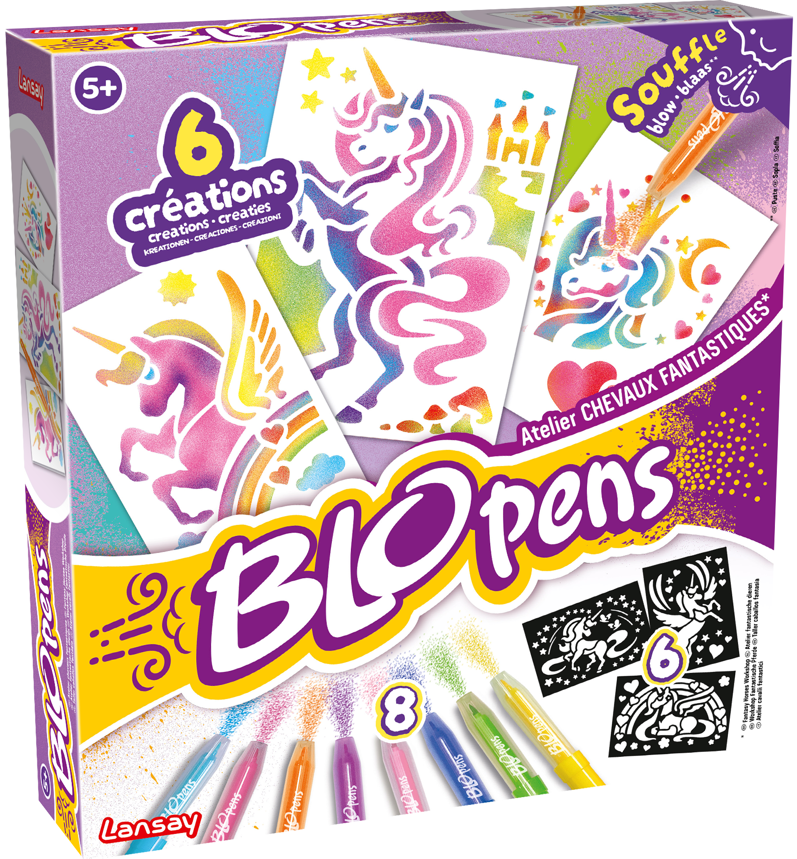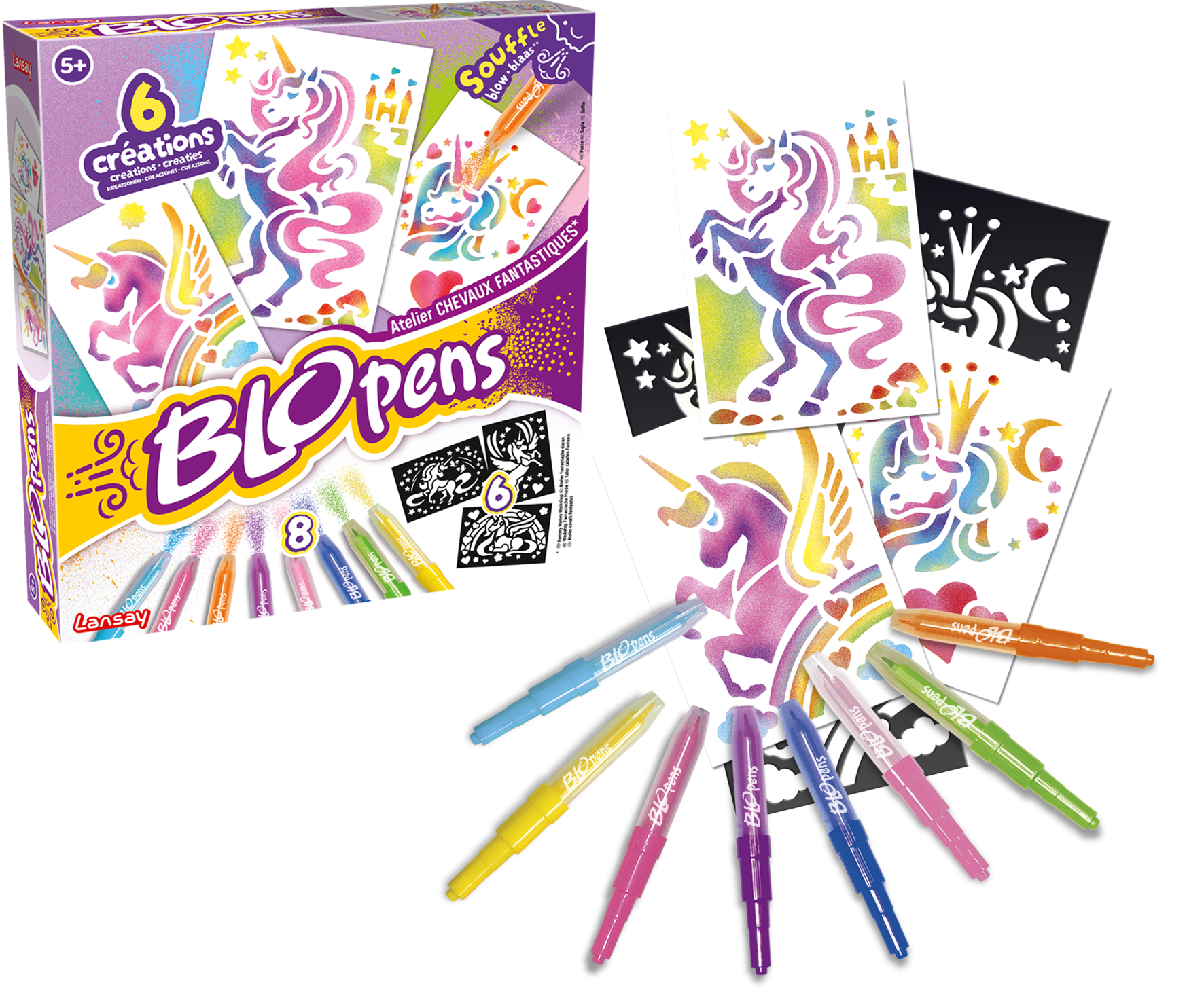 Les Blopens sont des feutres fantastiques ! Utilise un pochoir, souffle dans le stylo et regarde ton dessin apparaître avec un effet aérographe !