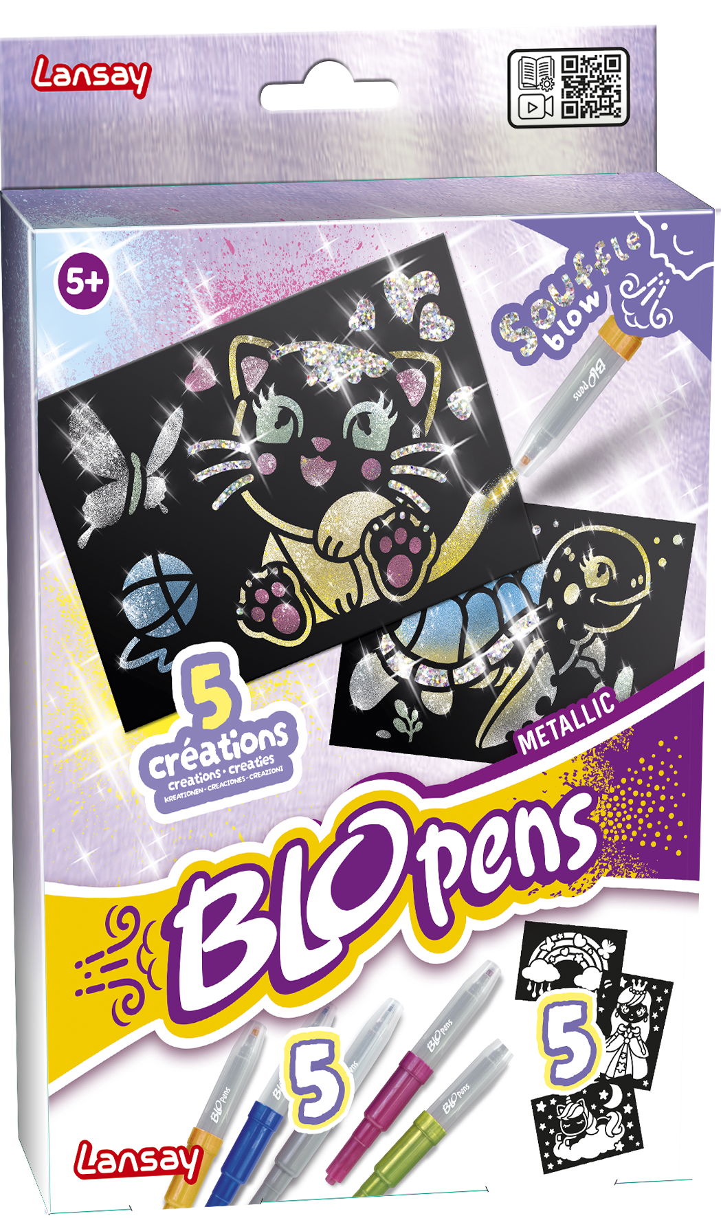 Dans ce set, découvre des Blopens aux couleurs métalliques pour des dessins super brillants ! Il y a même des pochoirs inédits et du papier de couleur noire pour faire encore mieux ressortir les couleurs !