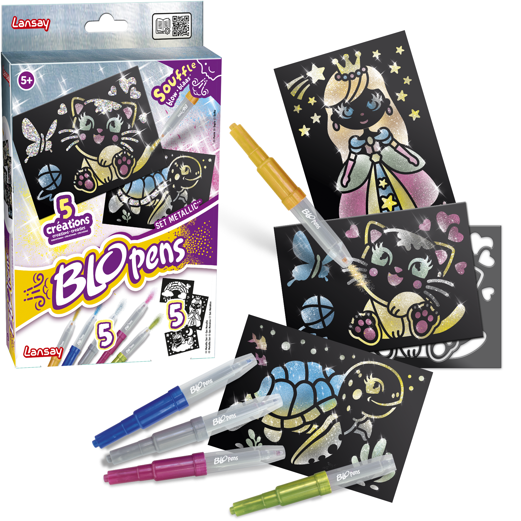 Les Blopens sont des feutres fantastiques ! Utilise un pochoir, souffle dans le stylo et regarde ton dessin apparaître avec un effet aérographe !