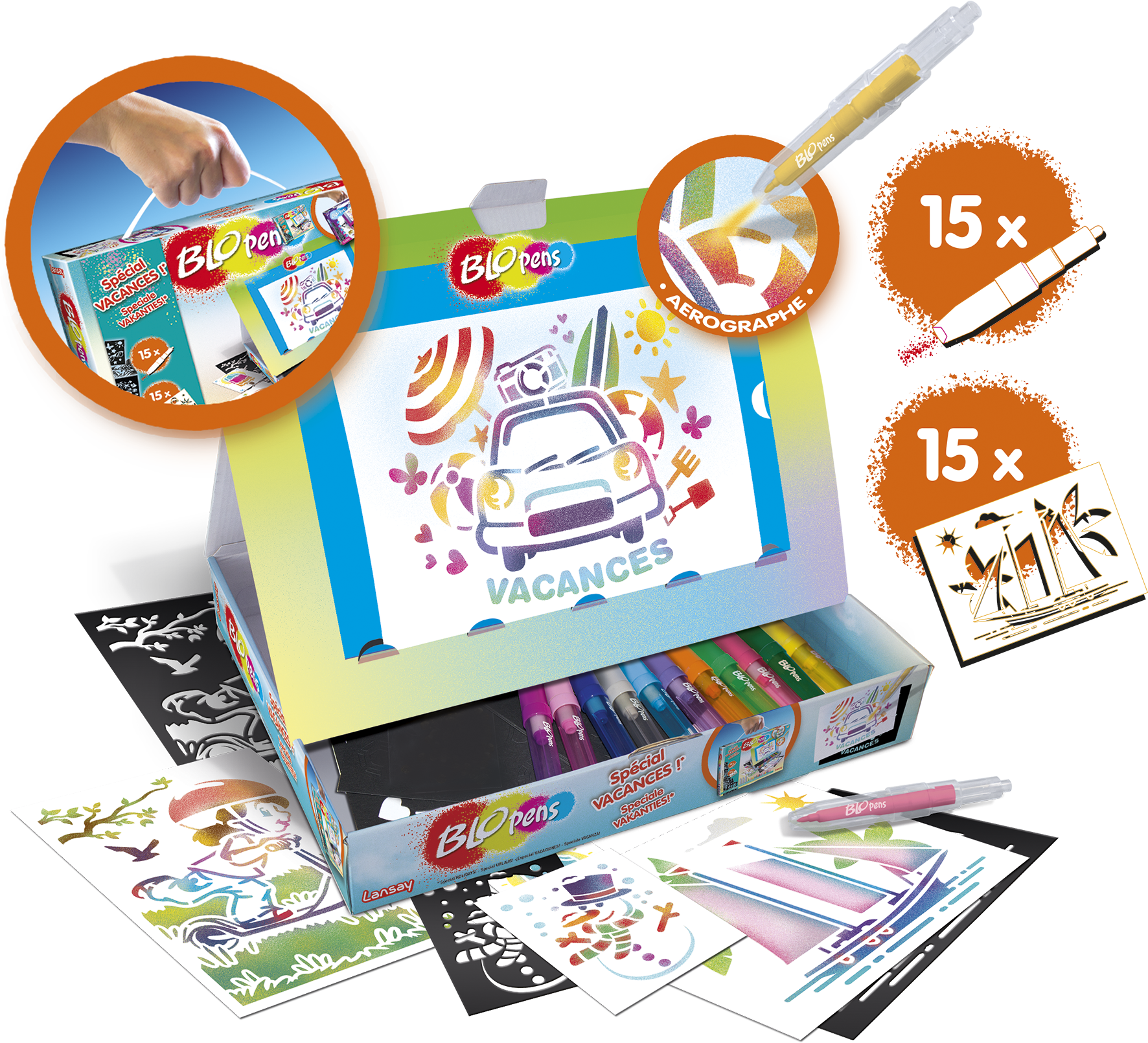 Pratique, tu peux ranger tes feutres, tes pochoirs et tes dessins à l’intérieur de la boîte !