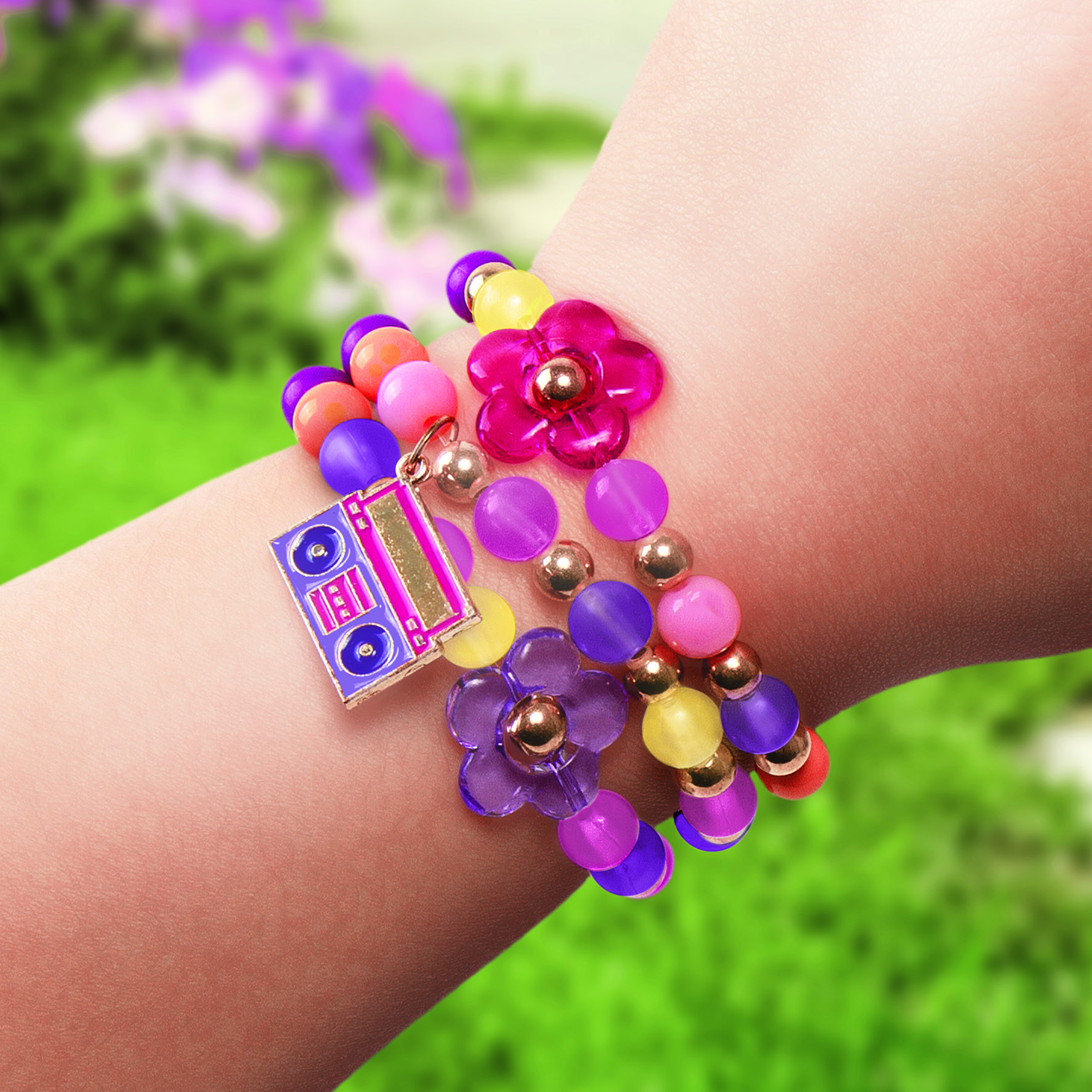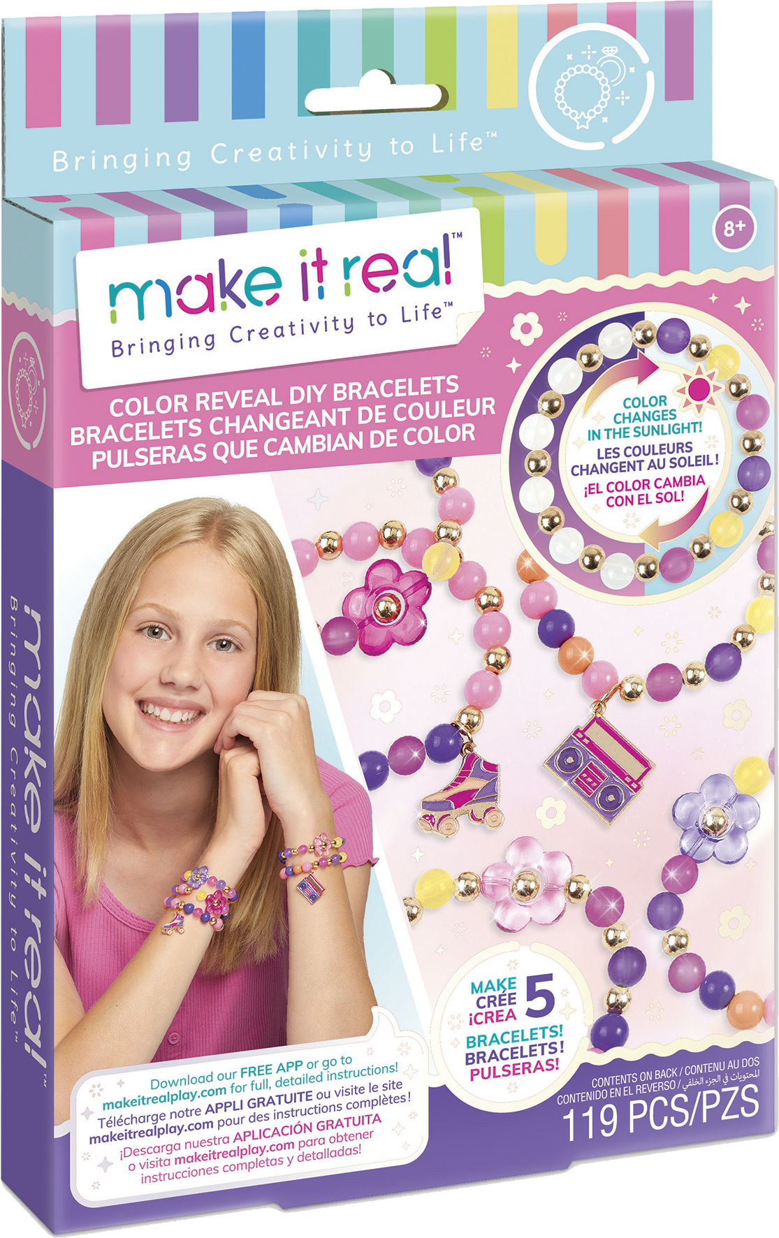La lumière du soleil suralimente les couleurs des perles ! Crée 5 bracelets qui changent de couleur.