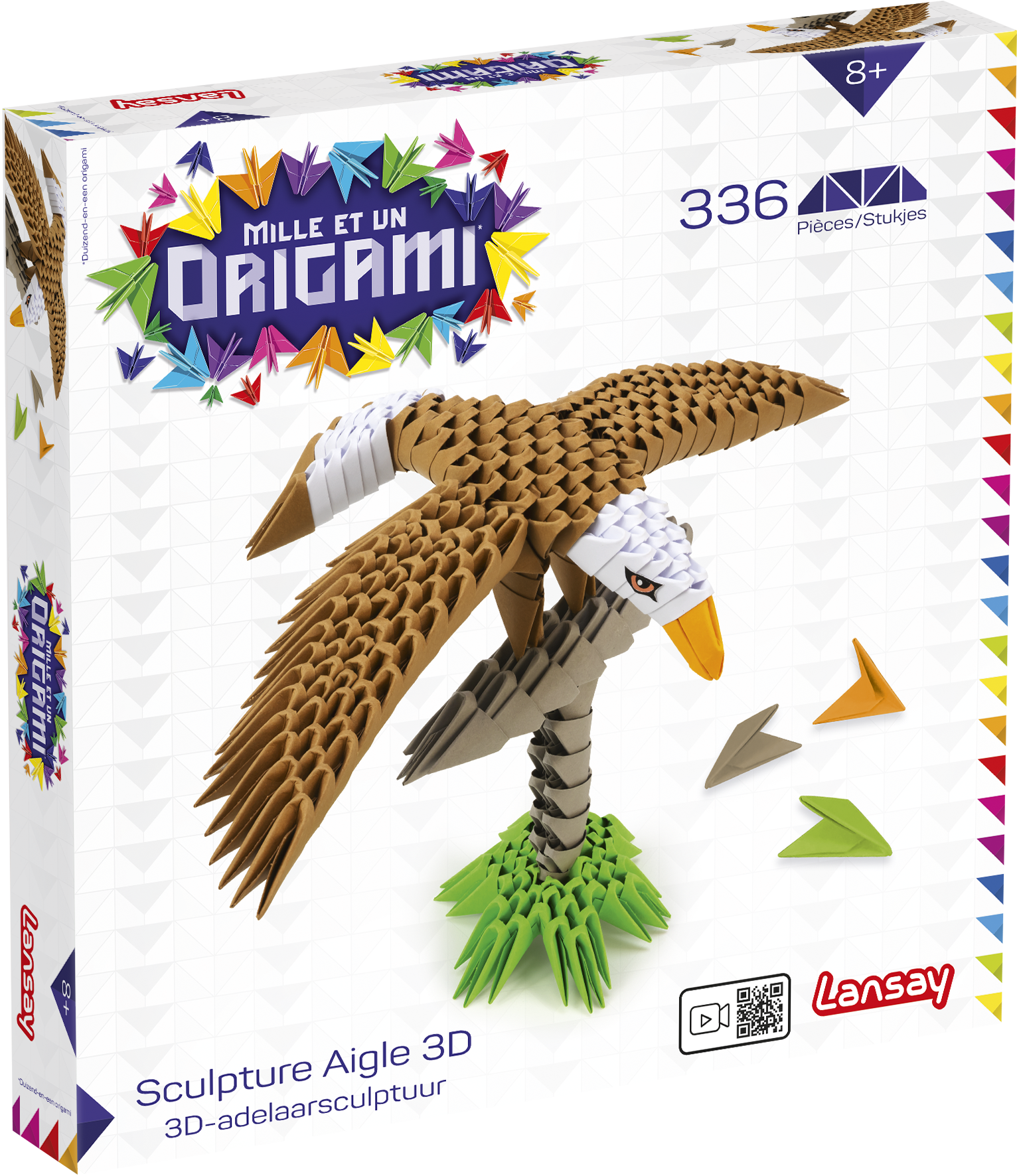 Dans ce kit, découvre plus de 300 pièces d’origamis faciles à plier. Grâce au manuel d’assemblage détaillé pas à pas, tu pourras les assembler pour construire un super aigle !