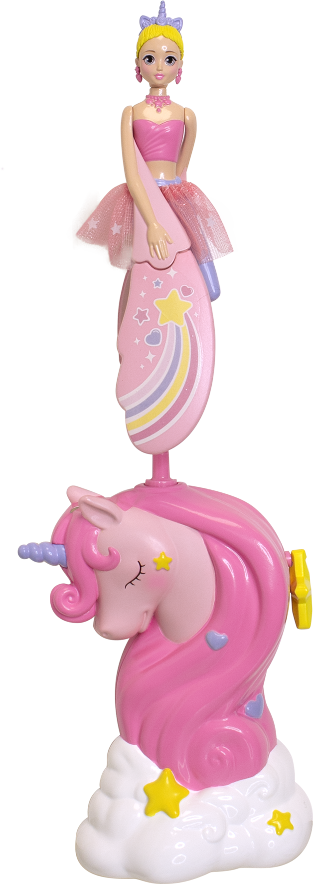Pose Rainbow Rose sur sa licorne et tire sur la corde pour la regarder s’envoler ! Wow, c’est magique !