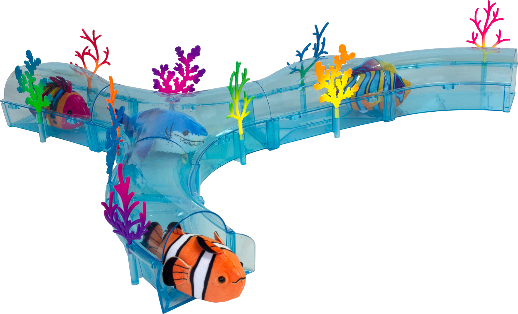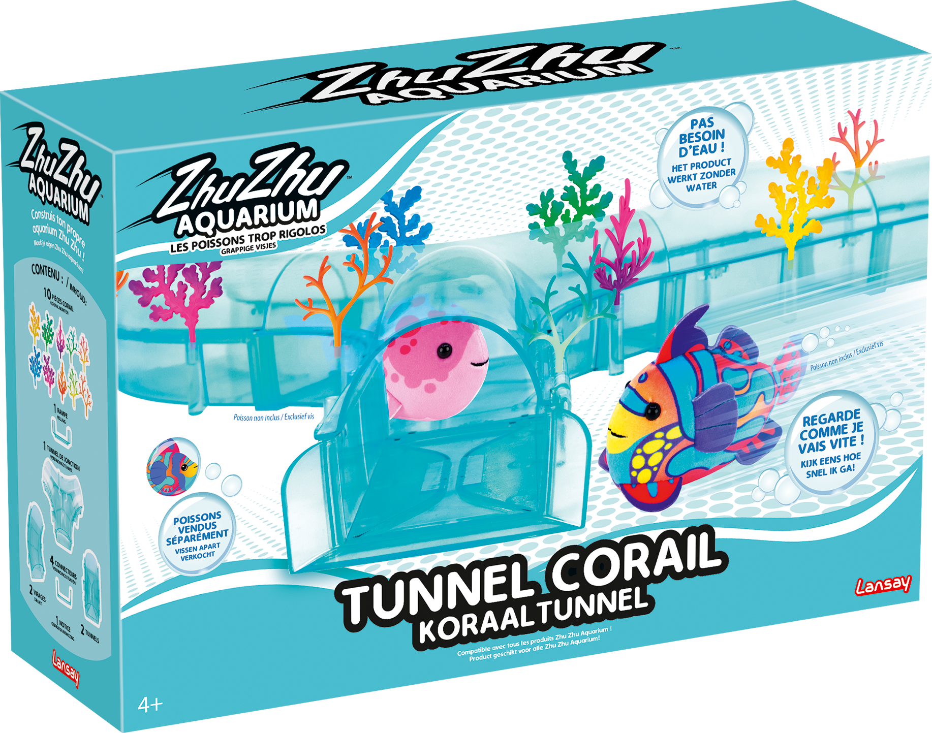Découvre ce tunnel entouré de corail très coloré et regarde ton poisson Zhu Zhu Aquarium se déplacer à toute allure de manière super rigolote !